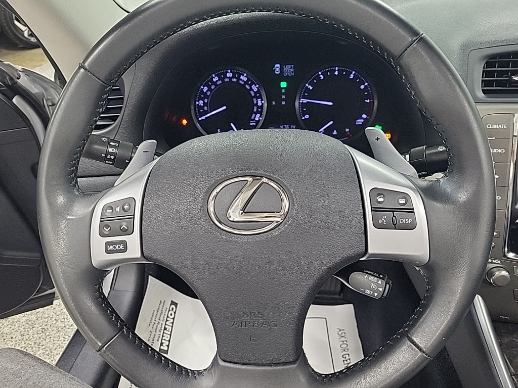 | Convertible HardTop | | 8 Speakers | | AM/FM radio: SiriusXM | | CD player | | Lexus Premium Audio System | | Radio data system | | Air Conditioning | | Automatic temperature control | | Front dual zone A/C | | Rear window defroster | | Power driver seat | | Power steering | | Power windows | | Remote keyless entry | | Steering wheel mounted audio controls | | Four wheel independent suspension | | Speed-sensing steering | | Traction control | | 4-Wheel Disc Brakes | | ABS brakes | | Dual front impact airbags | | Dual front side impact airbags | | Emergency communication system: Safety Connect | | Front anti-roll bar | | Integrated roll-over protection | | Knee airbag | | Low tire pressure warning | | Occupant sensing airbag | | Rear anti-roll bar | | Brake assist | | Electronic Stability Control | | Delay-off headlights | | Front fog lights | | Fully automatic headlights | | Panic alarm | | Security system | | Speed control | | Bumpers: body-color | | Heated door mirrors | | Power door mirrors | | Spoiler | | Turn signal indicator mirrors | | Auto tilt-away steering wheel | | Auto-dimming Rear-View mirror | | Compass | | Convertible roof lining | | Driver door bin | | Driver vanity mirror | | Front reading lights | | Garage door transmitter: HomeLink | | Genuine wood console insert | | Genuine wood door panel insert | | Illuminated entry | | Leather steering wheel | | Outside temperature display | | Overhead console | | Passenger vanity mirror | | Power convertible roof | | Tachometer | | Telescoping steering wheel | | Tilt steering wheel | | Trip computer | | Front Bucket Seats | | Front Center Armrest | | Leather Seat Trim | | Power passenger seat | | Passenger door bin | | 17'' x 8'' 10-Spoke Aluminum Alloy Wheels | | Alloy wheels | | Glass rear window | | Speed-Sensitive Wipers | | Variably intermittent wipers |