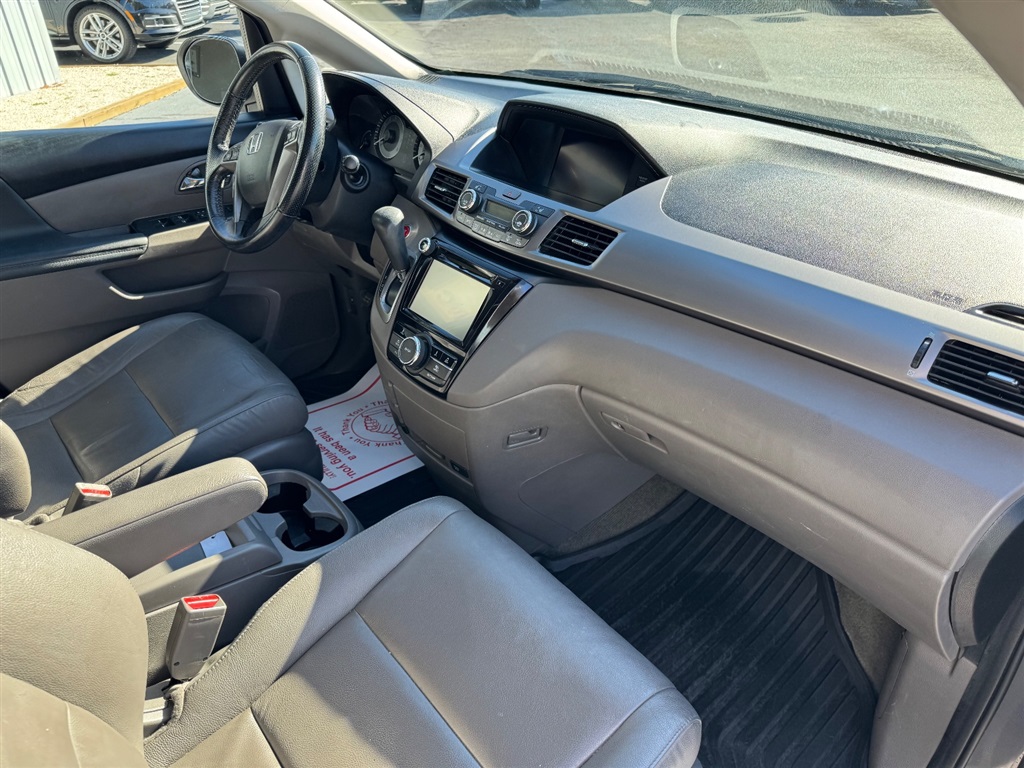 *SANDHILLS LEADER IN USED VEHICLES UNDER $20,000*CLEAN 1-OWNER CARFAX HISTORY REPORT*NEW CAR TRADE*NICELY EQUIPPED EX-L PACKAGE*HEATED LEATHER INTERIOR*BACK UP CAMERA*POWER SLIDING DOORS*3RD ROW SEATING*POWER SUNROOF*GREAT VEHICLE FOR THE WHOLE FAMILY TO ENJOY*BANK FINANCING AVAILABLE FOR ALL CREDIT TYPES!!! Start your adventure with our 2015 Honda Odyssey EX-L Van presented in beautiful Smoky Topaz Metallic. Powered by a 3.5 Liter V6 that offers 248hp paired to a 6 Speed Automatic transmission for natural passing authority. Fun to drive, this Front Wheel Drive minivan will impress you with its confident handling, acceleration, and versatility while offering nearly 27mpg on the highway. The aerodynamic exterior design of the Odyssey EX-L adds style as well as function. Get behind the wheel and experience the refined leather-trimmed EX-L interior featuring a massive sunroof; you may think you're in a luxury sedan! Designed with your busy family in mind, it has child-friendly power-sliding doors that help at school drop-off. Multi-adjustable second-row seats and a 60/40 split-folding third-row seat accommodate your growing family, and the cooler box is great for sippy cups! You will feel more relaxed with comfortable heated front seats and an audio system offering 2GB of digital music storage. Our Honda has earned superior safety ratings in its class due to ABS, stability/traction control, and airbags that cover all three rows. Start your journey with this Odyssey EX-L as your family's mobile command center. Save this Page and Call for Availability. We Know You Will Enjoy Your Test Drive Towards Ownership!