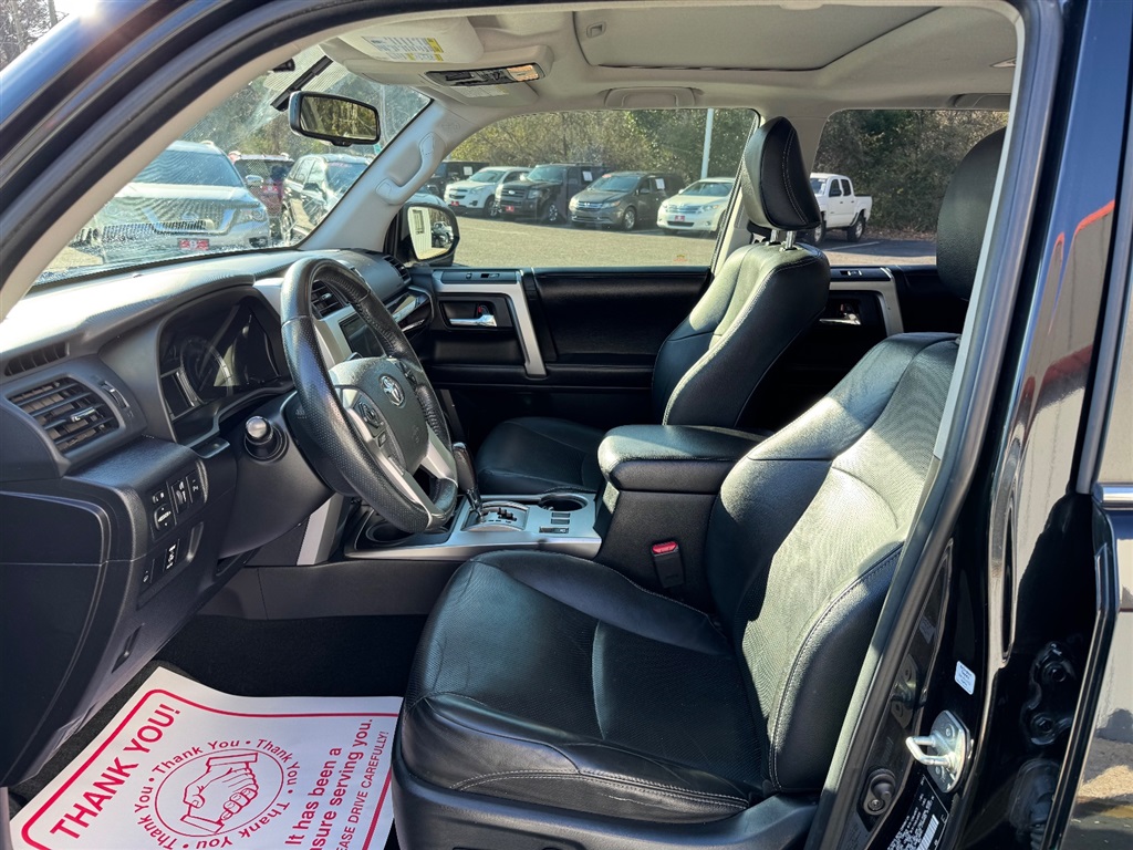 *SANDHILLS LEADER IN USED VEHICLES UNDER $20,000*SOUTHERN OWNED 4RUNNER*NEW CAR TRADE*LOADED LIMITED PACKAGE*V6*HEATED LEATHER INTERIOR*AFTER MARKET TOUCH SCREEN RADIO*BACK UP CAMERA*POWER SUNROOF*PUSH BUTTON START*JBL AUDIO*DOWN HILL ASSIST*GREAT LOOKING INSIDE AND OUT*VERY RARE TO FIND THIS BODY STYLE UNDER $20,000*BANK FINANCING AVAILABLE FOR ALL CREDIT TYPES!!! Our 2016 Toyota 4Runner Limited presented in Midnight Black Metallic handles with precision and control! Motivated by a 4.0 Liter V6 offering 270hp matched with a 5 Speed Automatic transmission for easy travel on or off the pavement. This SUV will score nearly 22mpg on the highway and can tow up to 4,700 pounds. With the sure-footed stance of Rear Wheel Drive, Downhill Assist Control, and X-REAS Sport Enhancement Suspension, you can go anywhere in your 4Runner! The contemporary ruggedness of our Limited stands out with refined chrome accents and 20-inch wheels. Inside our Limited, slide into heated and ventilated leather seats, glance up at the sunroof, and grip the leather-wrapped steering wheel with audio and Bluetooth?, hands-free phone, and voice command. Smart Key, pushbutton start, dual-zone automatic climate control, and a 40/20/40 split rear seat are nice conveniences. Thanks to Entune Premium JBL Audio with Navigation and Apps, you'll maintain an innovative connection and crank up your favorite tunes as you command the road in your 4Runner. Whatever your adventure, you'll be prepared and safe in our Toyota with ABS, a backup camera, airbags, and other advanced safety features. A remarkable blend of utility, capability, and bold style, this 4Runner Limited is an ideal choice for your active lifestyle! Save this Page and Call for Availability. We Know You Will Enjoy Your Test Drive Towards Ownership!
