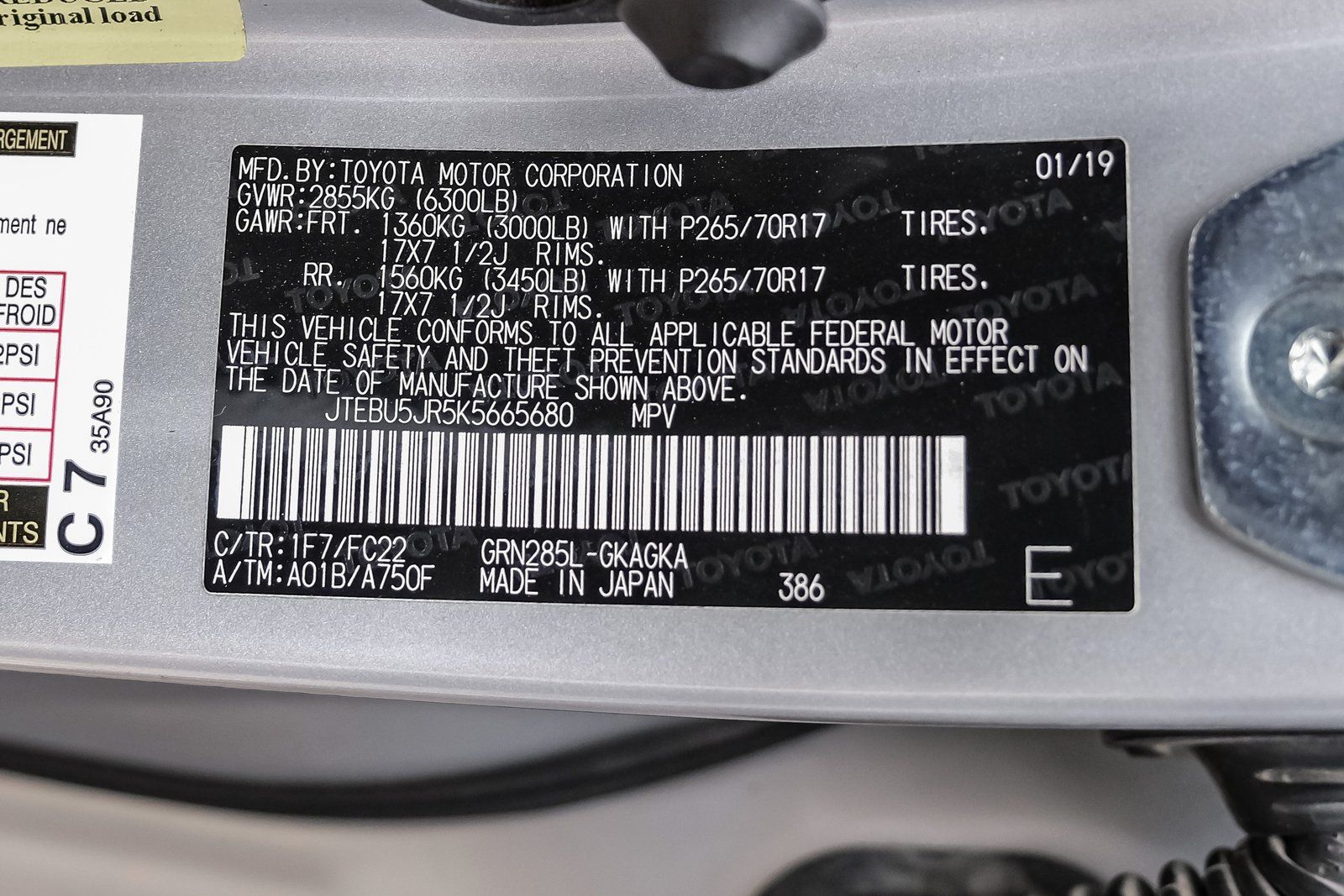 VIN #: JTEBU5JR5K5665680