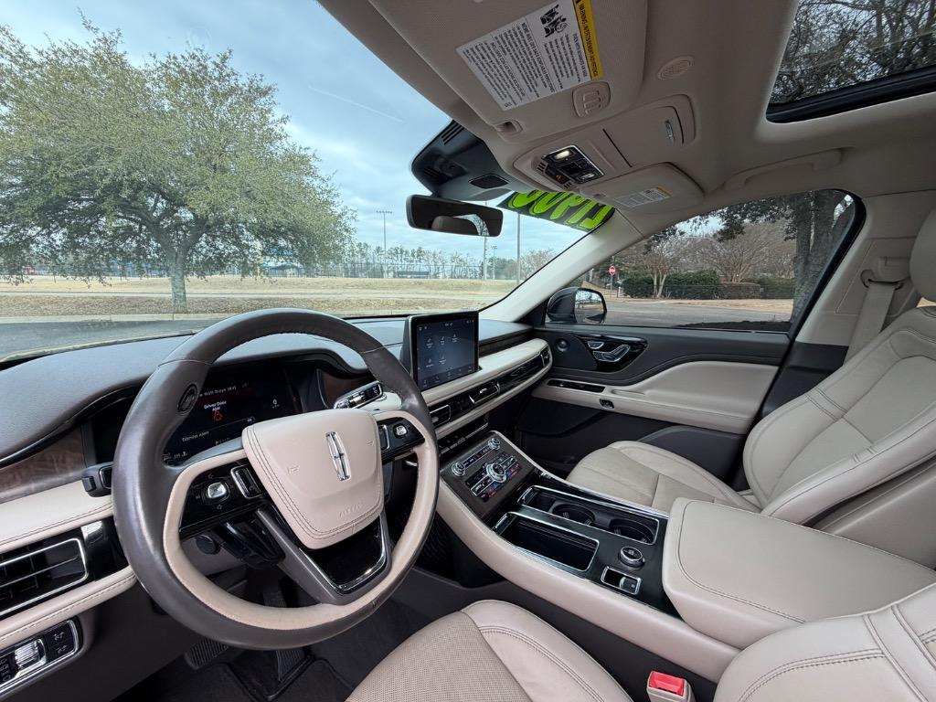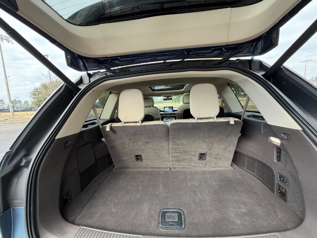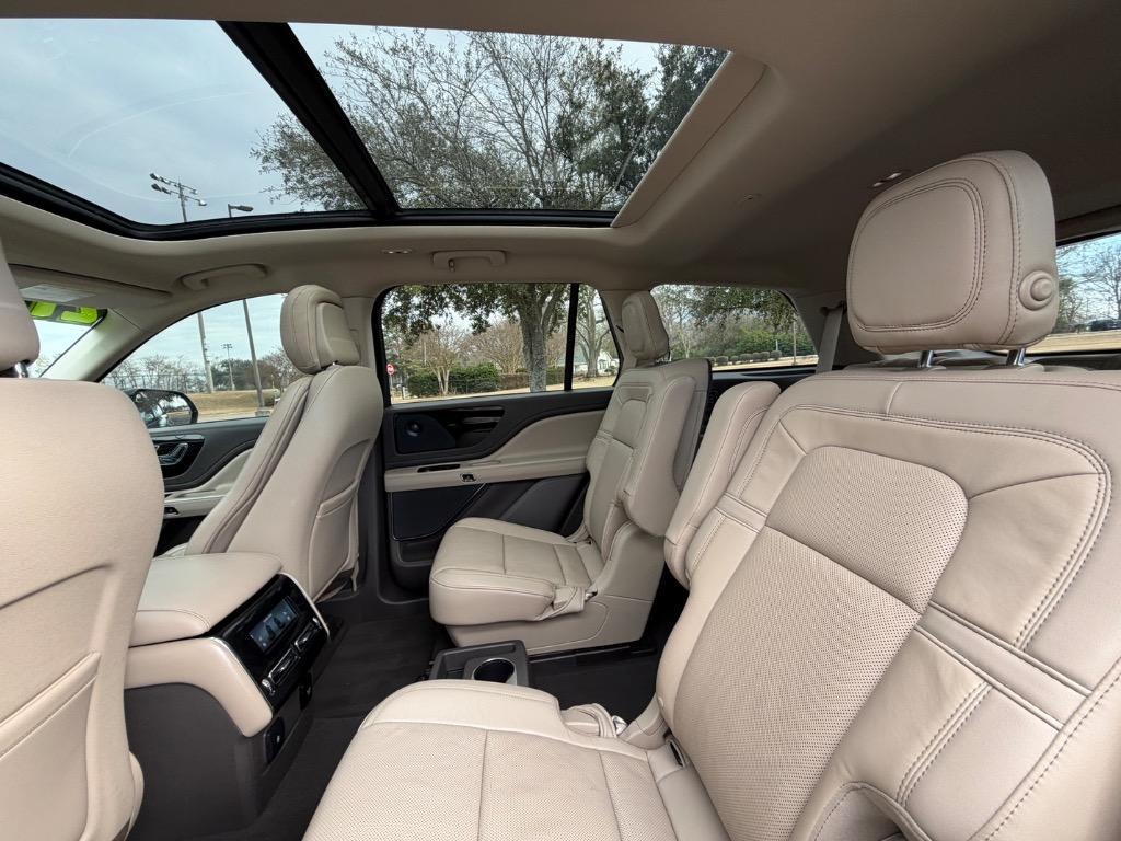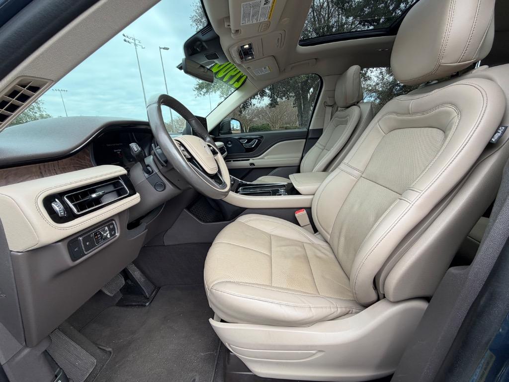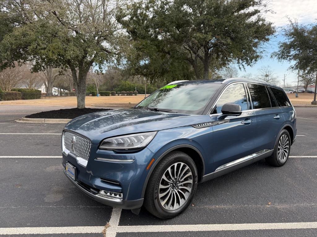 2020 LINCOLN AVIATOR RESERVE. 3.0L V6. REAR WHEEL DRIVE. CARFAX CERTIFIED ACCIDENT FREE! 14 CARFAX CERTIFIED SERVICE HISTORY RECORDS. BLUE DIAMOND METALLIC EXTERIOR. SANDSTONE LEATHER INTERIOR. REMOTE ENGINE START. KEYLESS ENTRY. PUSH TO START ENGINE. ELEMENTS PLUS PACKAGE ($1,180.00). HEATED LEATHER WRAPPED STEERING WHEEL W/ HANDS FREE TALK. AUDIO AND INTELLIGENT CRUISE CONTROLS. NAVIGATION CONTROLS. DISPLAY SCREEN W/ NAVIGATION. 360° CAMERA. WIFI HOT SPOT. MEDIA HUB W/ SIRIUSXM. BLUETOOTH. USB CONNECTION. DUAL CLIMATE CONTROL. DRIVE MODES. UNIVERSAL GARAGE OPENER. POWERED PANORAMIC MOON ROOF ($1,250.00). FRONT HEATED AND COOLED LEATHER BUCKET SEATS. MEMORY DRIVERS SEAT. DRIVER AND PASSENGER LUMBAR SUPPORT. AMBIENT LIGHT CONTROLS. REAR CLIMATE CONTROL. SECOND ROW LEATHER HEATED AND COOLED BUCKET SEATS. SECOND ROW USB PORTS. THIRD ROW AIR VENTS. THIRD ROW LEATHER BENCH SEAT. POWER LIFT GATE. CARGO STORAGE. POWERED THIRD ROW SEAT CONTROLS. COLOR KEYED DOOR HANDLES AND BLACK SIDE MIRRORS W/ BLIND SPOT MONITORING. CHROME FRONT GRILLE. MICHELIN TIRES. 20 INCH LINCOLN FACTORY WHEELS.
