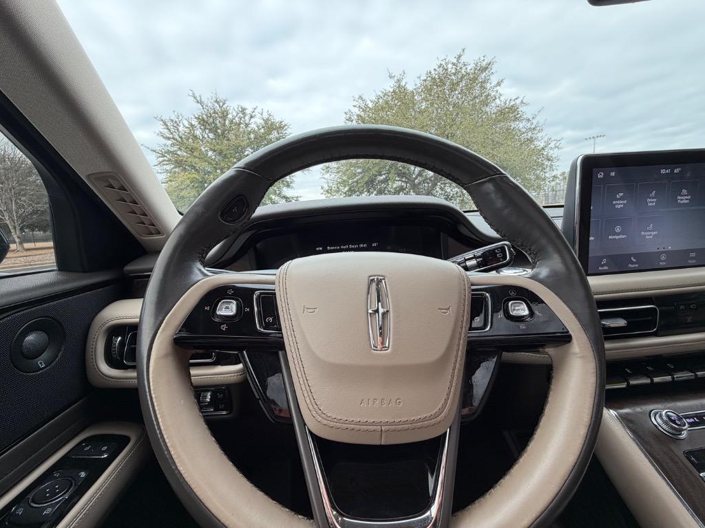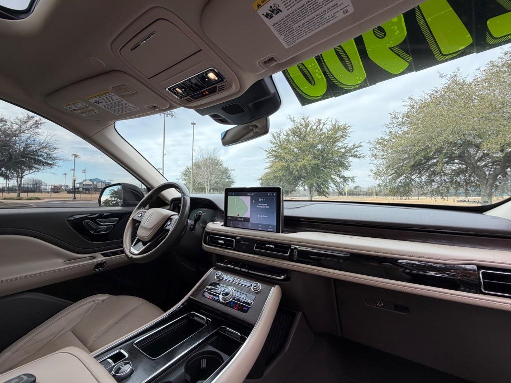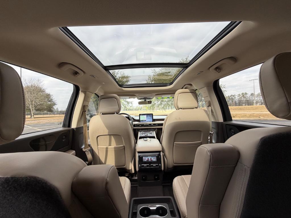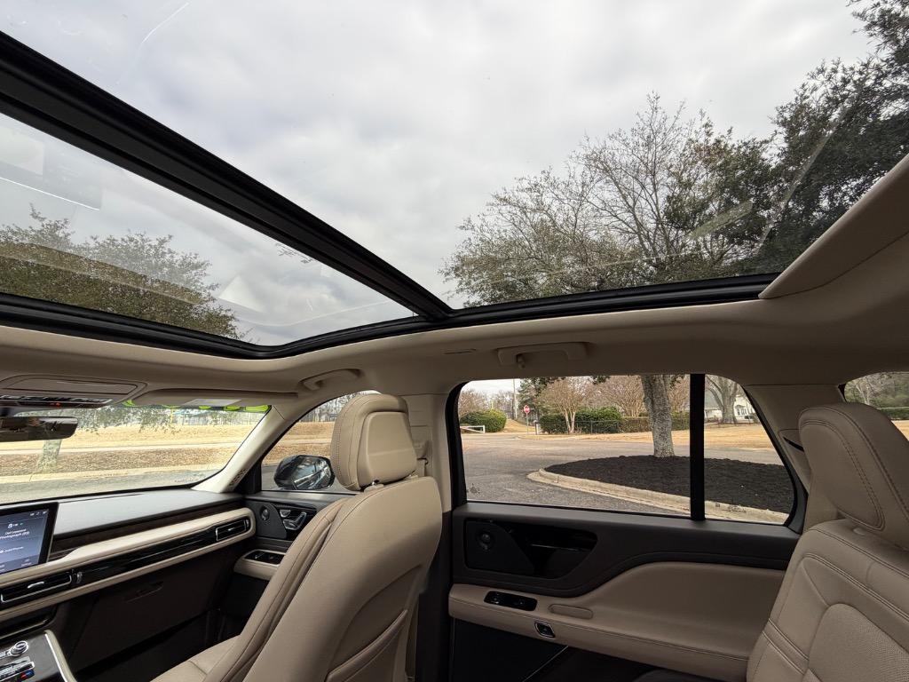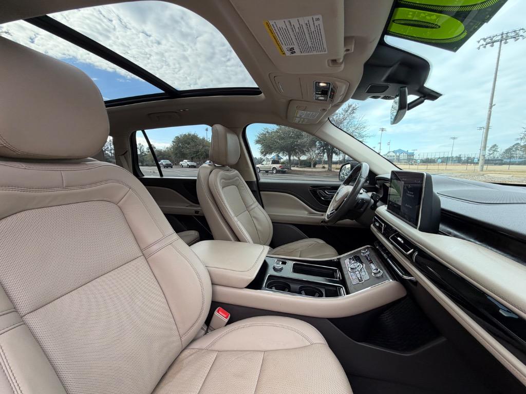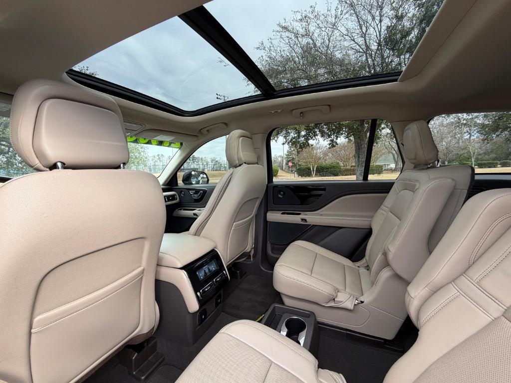 2020 LINCOLN AVIATOR RESERVE. 3.0L V6. REAR WHEEL DRIVE. CARFAX CERTIFIED ACCIDENT FREE! 14 CARFAX CERTIFIED SERVICE HISTORY RECORDS. BLUE DIAMOND METALLIC EXTERIOR. SANDSTONE LEATHER INTERIOR. REMOTE ENGINE START. KEYLESS ENTRY. PUSH TO START ENGINE. ELEMENTS PLUS PACKAGE ($1,180.00). HEATED LEATHER WRAPPED STEERING WHEEL W/ HANDS FREE TALK. AUDIO AND INTELLIGENT CRUISE CONTROLS. NAVIGATION CONTROLS. DISPLAY SCREEN W/ NAVIGATION. 360° CAMERA. WIFI HOT SPOT. MEDIA HUB W/ SIRIUSXM. BLUETOOTH. USB CONNECTION. DUAL CLIMATE CONTROL. DRIVE MODES. UNIVERSAL GARAGE OPENER. POWERED PANORAMIC MOON ROOF ($1,250.00). FRONT HEATED AND COOLED LEATHER BUCKET SEATS. MEMORY DRIVERS SEAT. DRIVER AND PASSENGER LUMBAR SUPPORT. AMBIENT LIGHT CONTROLS. REAR CLIMATE CONTROL. SECOND ROW LEATHER HEATED AND COOLED BUCKET SEATS. SECOND ROW USB PORTS. THIRD ROW AIR VENTS. THIRD ROW LEATHER BENCH SEAT. POWER LIFT GATE. CARGO STORAGE. POWERED THIRD ROW SEAT CONTROLS. COLOR KEYED DOOR HANDLES AND BLACK SIDE MIRRORS W/ BLIND SPOT MONITORING. CHROME FRONT GRILLE. MICHELIN TIRES. 20 INCH LINCOLN FACTORY WHEELS.