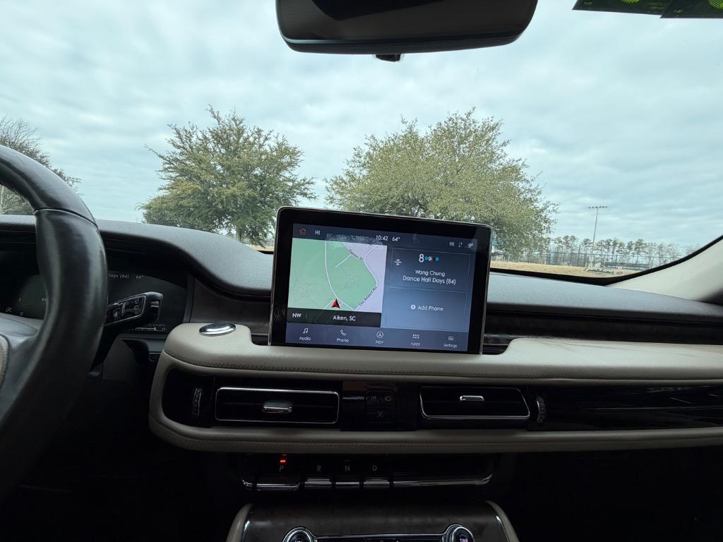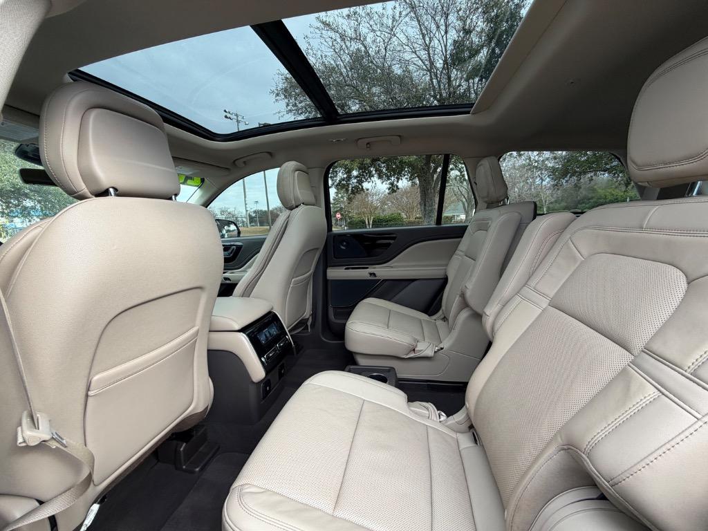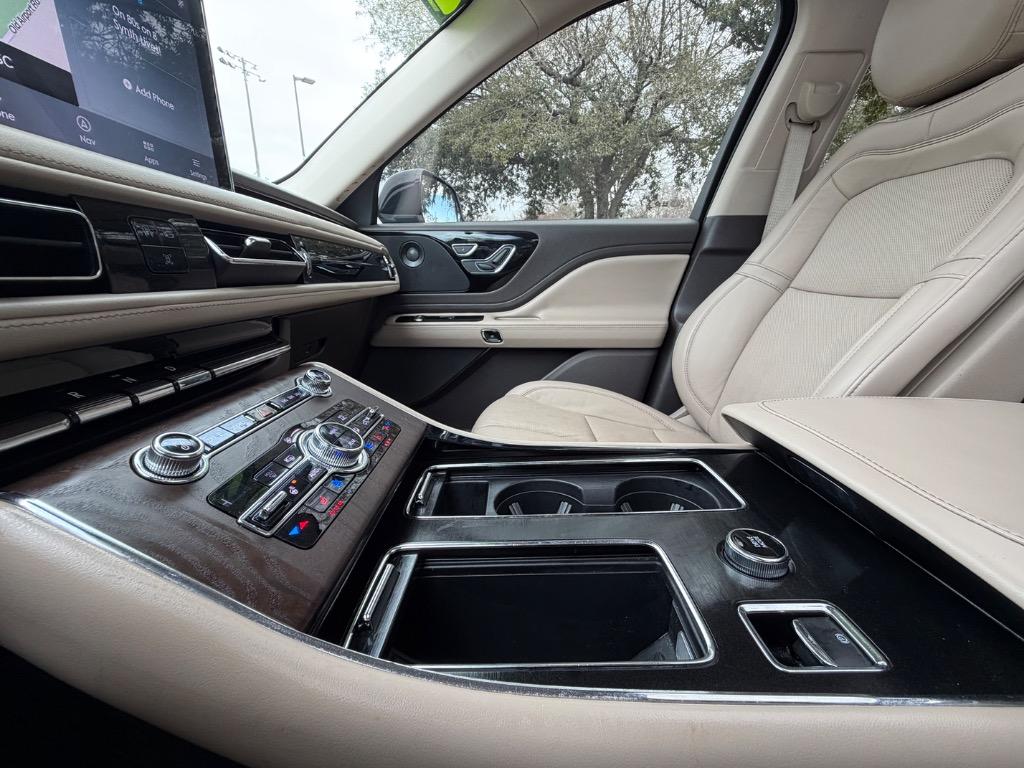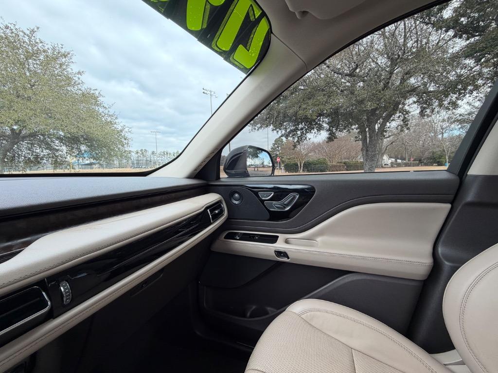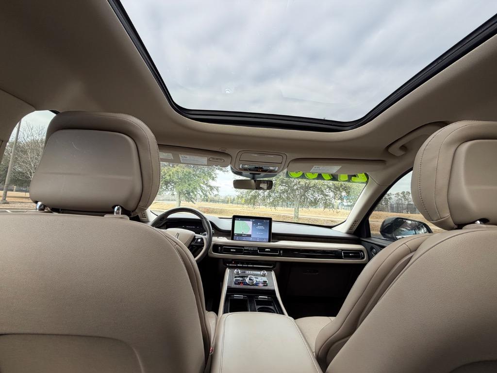 2020 LINCOLN AVIATOR RESERVE. 3.0L V6. REAR WHEEL DRIVE. CARFAX CERTIFIED ACCIDENT FREE! 14 CARFAX CERTIFIED SERVICE HISTORY RECORDS. BLUE DIAMOND METALLIC EXTERIOR. SANDSTONE LEATHER INTERIOR. REMOTE ENGINE START. KEYLESS ENTRY. PUSH TO START ENGINE. ELEMENTS PLUS PACKAGE ($1,180.00). HEATED LEATHER WRAPPED STEERING WHEEL W/ HANDS FREE TALK. AUDIO AND INTELLIGENT CRUISE CONTROLS. NAVIGATION CONTROLS. DISPLAY SCREEN W/ NAVIGATION. 360° CAMERA. WIFI HOT SPOT. MEDIA HUB W/ SIRIUSXM. BLUETOOTH. USB CONNECTION. DUAL CLIMATE CONTROL. DRIVE MODES. UNIVERSAL GARAGE OPENER. POWERED PANORAMIC MOON ROOF ($1,250.00). FRONT HEATED AND COOLED LEATHER BUCKET SEATS. MEMORY DRIVERS SEAT. DRIVER AND PASSENGER LUMBAR SUPPORT. AMBIENT LIGHT CONTROLS. REAR CLIMATE CONTROL. SECOND ROW LEATHER HEATED AND COOLED BUCKET SEATS. SECOND ROW USB PORTS. THIRD ROW AIR VENTS. THIRD ROW LEATHER BENCH SEAT. POWER LIFT GATE. CARGO STORAGE. POWERED THIRD ROW SEAT CONTROLS. COLOR KEYED DOOR HANDLES AND BLACK SIDE MIRRORS W/ BLIND SPOT MONITORING. CHROME FRONT GRILLE. MICHELIN TIRES. 20 INCH LINCOLN FACTORY WHEELS.