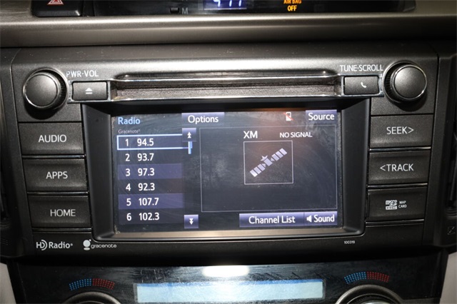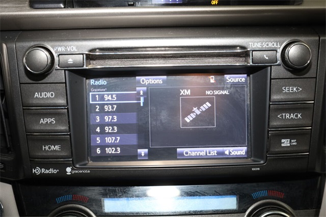 | Navigation System | | 6 Speakers | | AM/FM radio: SiriusXM | | CD player | | Radio data system | | Radio: Entune Premium Audio with Navigation | | Air Conditioning | | Automatic temperature control | | Front dual zone A/C | | Rear window defroster | | Memory seat | | Power driver seat | | Power steering | | Power windows | | Remote keyless entry | | Steering wheel mounted audio controls | | Four wheel independent suspension | | Speed-sensing steering | | Traction control | | 4-Wheel Disc Brakes | | ABS brakes | | Dual front impact airbags | | Dual front side impact airbags | | Front anti-roll bar | | Knee airbag | | Low tire pressure warning | | Occupant sensing airbag | | Overhead airbag | | Rear anti-roll bar | | Power moonroof | | Power Liftgate | | Brake assist | | Electronic Stability Control | | Exterior Parking Camera Rear | | Front fog lights | | Fully automatic headlights | | Panic alarm | | Speed control | | Bumpers: body-color | | Heated door mirrors | | Power door mirrors | | Roof rack: rails only | | Spoiler | | Turn signal indicator mirrors | | Auto-dimming Rear-View mirror | | Driver door bin | | Driver vanity mirror | | Front reading lights | | Illuminated entry | | Leather Shift Knob | | Leather steering wheel | | Outside temperature display | | Overhead console | | Passenger vanity mirror | | Rear seat center armrest | | Tachometer | | Telescoping steering wheel | | Tilt steering wheel | | Trip computer | | Front Bucket Seats | | Front Center Armrest | | Heated front seats | | Heated Front Sport Seats | | SofTex Seat Trim | | Split folding rear seat | | Passenger door bin | | Alloy wheels | | Wheels: 18'' x 7.5J Alloy ALM | | Rear window wiper | | Variably intermittent wipers | | 4.071 Axle Ratio |