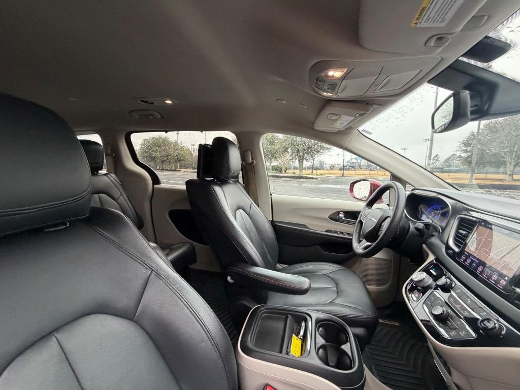 2020 CHRYSLER PACIFICA TOURING. 3.6L V6. FRONT WHEEL DRIVE. CARFAX CERTIFIED ACCIDENT FREE! 17 CARFAX CERTIFIED SERVICE HISTORY RECORDS. CARFAX CERTIFIED GOOD RELIABILITY VEHICLE. VELVET RED PEARL EXTERIOR. BLACK LEATHER INTERIOR. REMOTE ENGINE START ENGINE. KEYLESS ENTRY. PUSH TO START ENGINE. LEATHER WRAPPED STEERING WHEEL W/ HANDS FREE TALK. AUDIO AND CRUISE CONTROLS. DISPLAY SCREEN W/ NAVIGATION. BACKUP CAMERA. MEDIA HUB W/ CD PLAYER. BLUETOOTH. APPLE CAR PLAY. ANDROID AUTO. USB CONNECTION. AUXILIARY PORT. SIRIUSXM. WIFI HOT SPOT ($495.00). DUAL CLIMATE CONTROL. ALL WEATHER RUBBER FLOOR MATS. FRONT LEATHER BUCKET SEATS. REAR CLIMATE CONTROL. REAR ENTERTAINMENT SCREENS ($2,395.00). REAR WINDOW SHADES. REAR POWER SLIDING DOORS. SECOND ROW LEATHER BUCKET SEATS. THIRD ROW LEATHER BENCH SEAT. POWER LIFT GATE. CARGO STORAGE. COLOR KEYED DOOR HANDLES & SIDE MIRRORS W/ BLIND SPOT MONITORING. 17 INCH CHRYSLER PACIFICA FACTORY WHEELS.