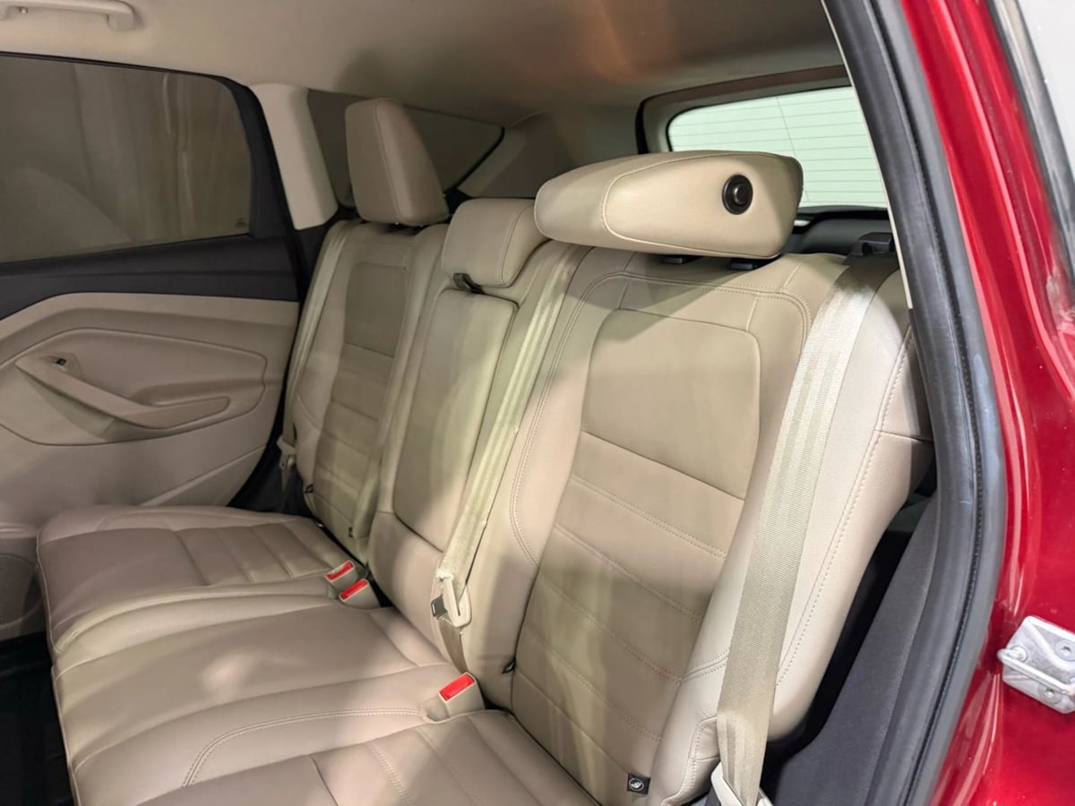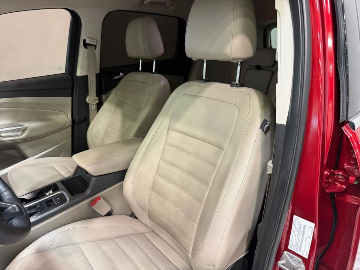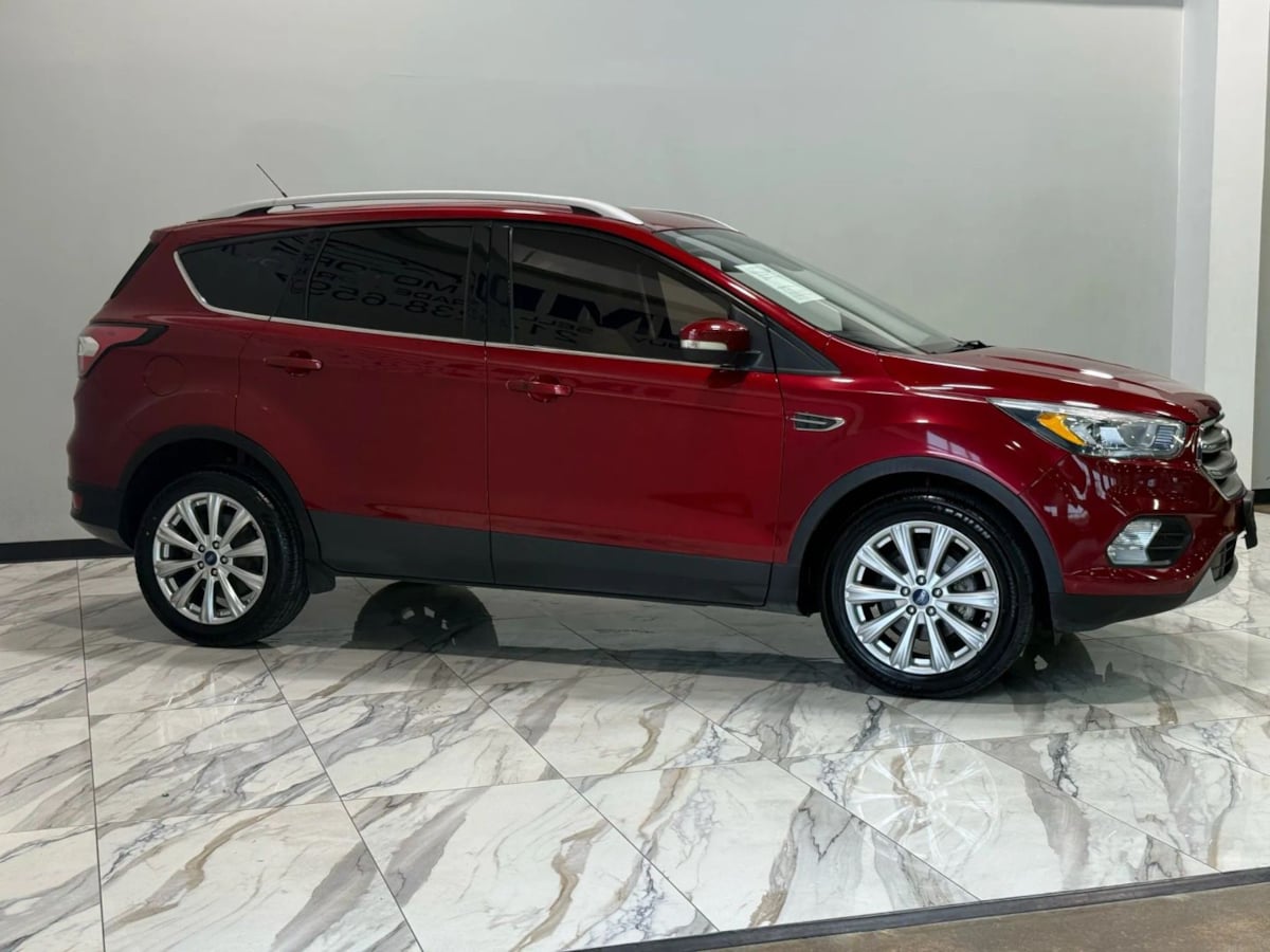 The 2017 Ford Escape Titanium FWD in Ruby Red Metallic Tinted Clearcoat is a striking example of modern automotive design combined with practicality. Its exterior color not only exudes an air of sophistication but also sets it apart on the road. The finely finished metallic tint complements the vehicle's sleek lines, enhancing its overall allure. Paired with 18-inch sparkle silver-painted aluminum wheels, this Escape truly commands attention.Inside, the Medium Light Stone interior offers a warm and inviting atmosphere, making every drive a comfortable experience. Ergonomically designed controls and premium materials accentuate the cabin's refined appeal. This particular model features the Equipment Group 300A, ensuring a well-rounded package of safety and convenience technology. Premium amenities such as a power liftgate and leather-trimmed seating enhance the Escape's upscale demeanor.Under the hood lies the efficient 1.5L EcoBoost engine, delivering an impressive combination of power and fuel economy. With a seamless six-speed automatic transmission, this vehicle promises a smooth and responsive drive. Furthermore, the Titanium FWD style ensures exceptional handling and maneuverability, ideal for both urban streets and highway cruising. For those who seek a blend of style, comfort, and efficiency, the 2017 Ford Escape Titanium in Ruby Red Metallic is a compelling choice.