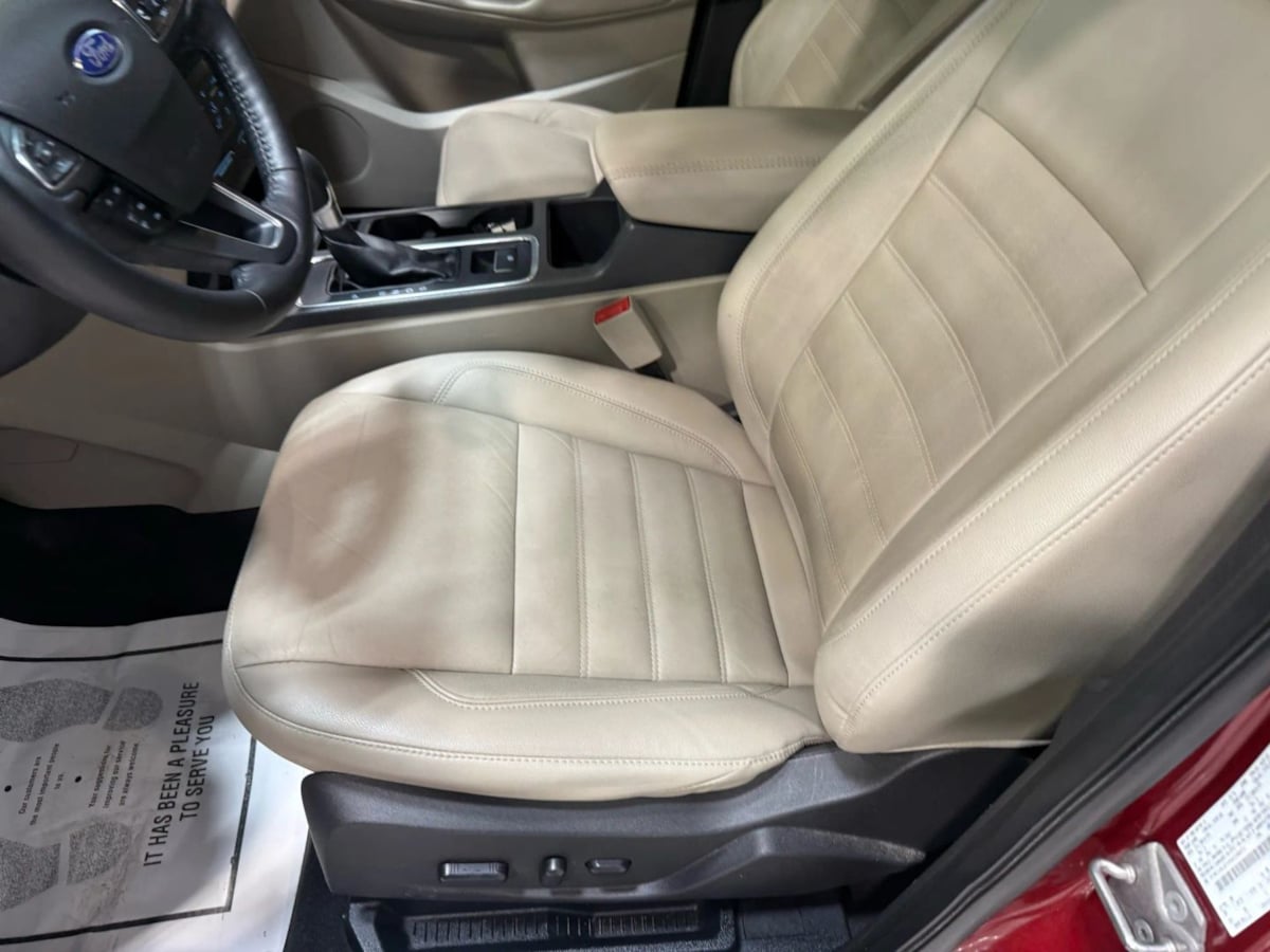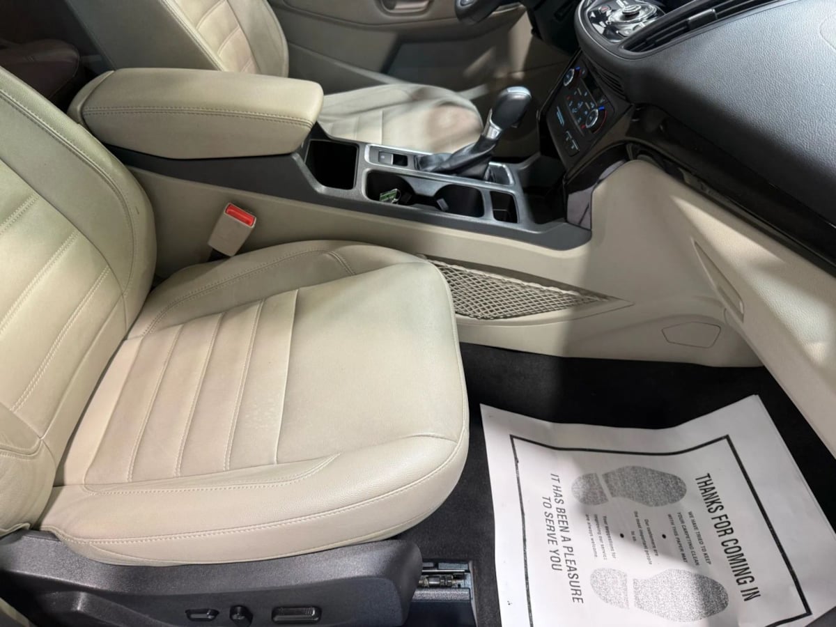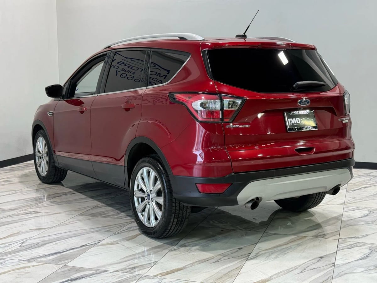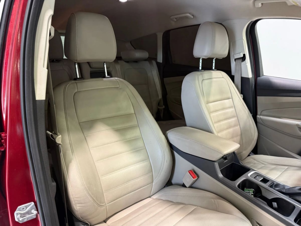 The 2017 Ford Escape Titanium FWD in Ruby Red Metallic Tinted Clearcoat is a striking example of modern automotive design combined with practicality. Its exterior color not only exudes an air of sophistication but also sets it apart on the road. The finely finished metallic tint complements the vehicle's sleek lines, enhancing its overall allure. Paired with 18-inch sparkle silver-painted aluminum wheels, this Escape truly commands attention.Inside, the Medium Light Stone interior offers a warm and inviting atmosphere, making every drive a comfortable experience. Ergonomically designed controls and premium materials accentuate the cabin's refined appeal. This particular model features the Equipment Group 300A, ensuring a well-rounded package of safety and convenience technology. Premium amenities such as a power liftgate and leather-trimmed seating enhance the Escape's upscale demeanor.Under the hood lies the efficient 1.5L EcoBoost engine, delivering an impressive combination of power and fuel economy. With a seamless six-speed automatic transmission, this vehicle promises a smooth and responsive drive. Furthermore, the Titanium FWD style ensures exceptional handling and maneuverability, ideal for both urban streets and highway cruising. For those who seek a blend of style, comfort, and efficiency, the 2017 Ford Escape Titanium in Ruby Red Metallic is a compelling choice.