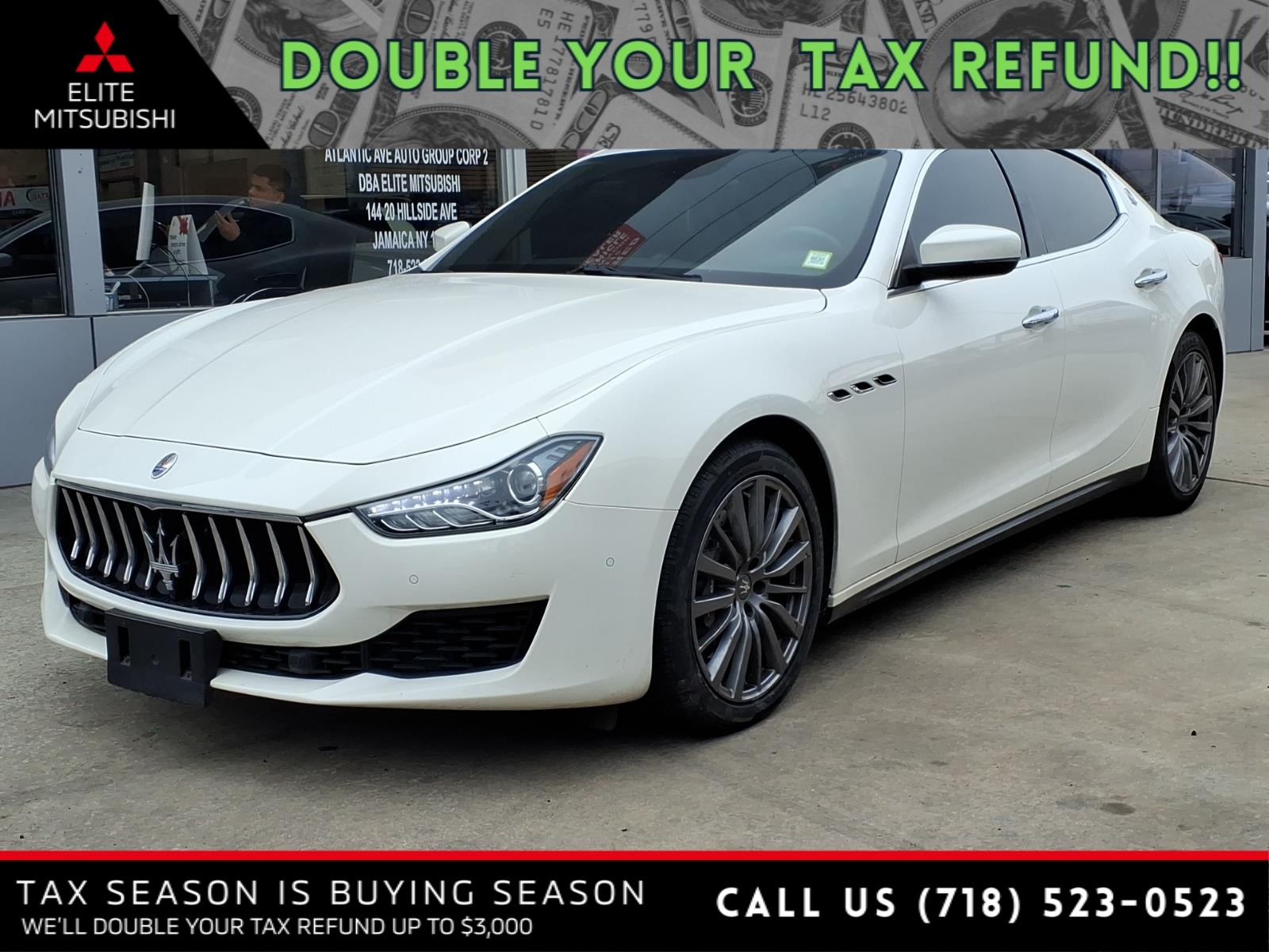 White 2018 Maserati Ghibli S Q4 AWD ZF 8-Speed Automatic 3.0L V6 All pricing and details are believed to be accurate. We do not guarantee such accuracy. The prices presented may vary, as well as incentives, and are subject to change. All cars are sold cosmetically As-Is. The Retail price is the actual price with potential savings based on tax savings on estimated trade allocations and finance specials. Vehicle information is based on standard equipment and may vary from vehicle to vehicle. Contact us for complete vehicle specific information. Price does not include tax, tag and title. Prices can be modified and adjusted weekly, daily and sometimes hourly due to inquiries, bidding and website traffic on any vehicles. All displayed inventory is subject to prior sale, and all prices expire at midnight on the date displayed. Every reasonable effort has been made to ensure the accuracy of the information contained on this site; however absolute accuracy cannot be guaranteed. Please verify any information in question with the dealership sales manager. This is easily done by calling us at 718-523-0523 or by visiting us at the dealership. Odometer is 28619 miles below market average!