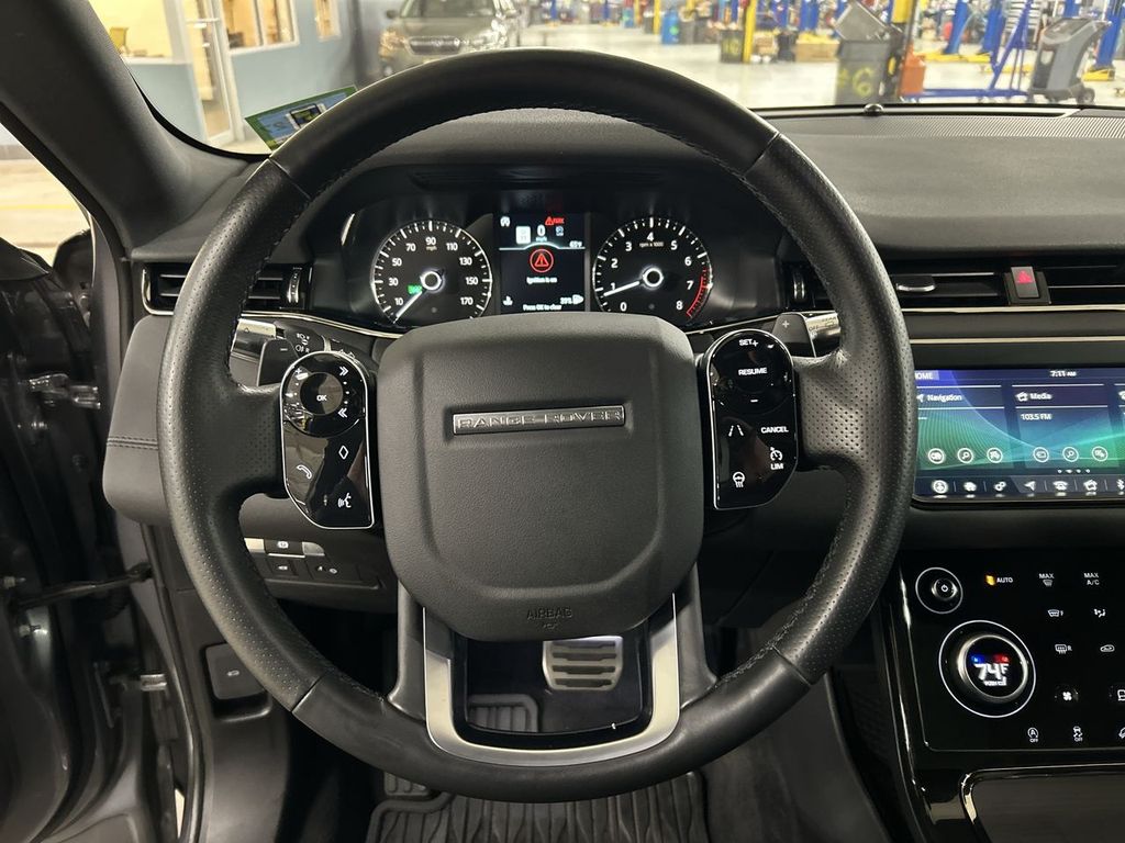 | Navigation system: InControl Navigation Pro | | 180 Watt Range Rover Sound System w/6-Speakers | | 6 Speakers | | Radio data system | | Radio: Touch Pro Infotainment w/10'' Touchscreen | | Air Conditioning | | Automatic temperature control | | Front dual zone A/C | | Rear window defroster | | Power driver seat | | Power steering | | Power windows | | Remote keyless entry | | Steering wheel mounted audio controls | | Four wheel independent suspension | | Speed-sensing steering | | Traction control | | 4-Wheel Disc Brakes | | ABS brakes | | Dual front impact airbags | | Dual front side impact airbags | | Emergency communication system: InControl Protect | | Front anti-roll bar | | Low tire pressure warning | | Occupant sensing airbag | | Overhead airbag | | Rear anti-roll bar | | Brake assist | | Electronic Stability Control | | Exterior Parking Camera Rear | | Delay-off headlights | | Fully automatic headlights | | Rear fog lights | | Panic alarm | | Security system | | Speed control | | Auto-dimming door mirrors | | Bumpers: body-color | | Heated door mirrors | | Power door mirrors | | Spoiler | | Turn signal indicator mirrors | | 10-Way Front Bucket Seats | | Android Auto | | Apple CarPlay | | Apple CarPlay & Android Auto | | Auto-dimming Rear-View mirror | | Compass | | Driver door bin | | Driver vanity mirror | | Front reading lights | | Illuminated entry | | Leather Shift Knob | | Outside temperature display | | Overhead console | | Passenger vanity mirror | | Power Socket Pack 1 | | Rear reading lights | | Rear seat center armrest | | Tachometer | | Telescoping steering wheel | | Tilt steering wheel | | Trip computer | | Front Bucket Seats | | Front Center Armrest | | Grained Leather Seat Trim | | Power passenger seat | | Split folding rear seat | | Passenger door bin | | Alloy wheels | | Wheels: 18'' 5 Split-Spoke (Style 5074) | | Rain sensing wipers | | Rear window wiper | | Speed-Sensitive Wipers | | Variably intermittent wipers | | 3.94 Axle Ratio |