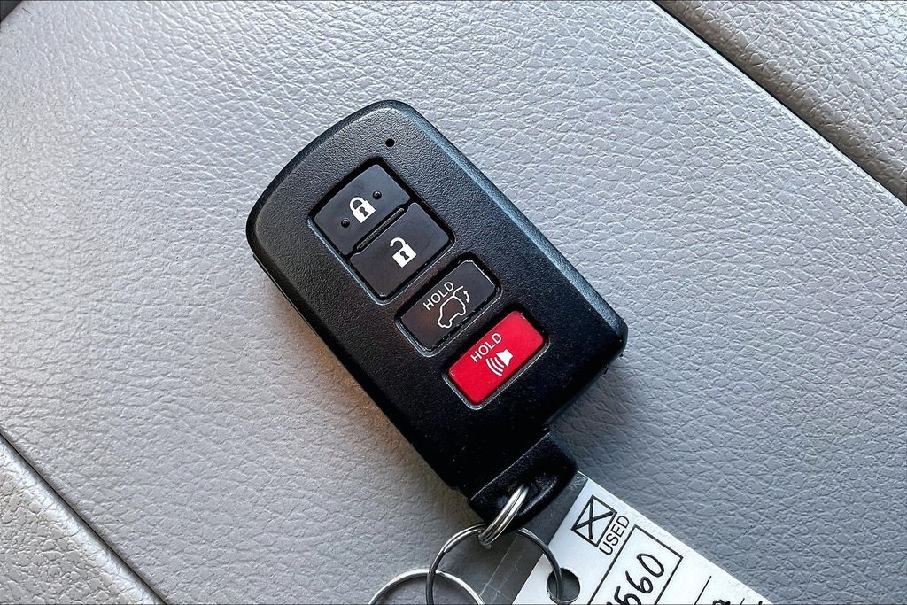 | Navigation System | | 6 Speakers | | AM/FM radio: SiriusXM | | CD player | | Radio: Entune Premium Audio w/Nav & App Suite | | Air Conditioning | | Automatic temperature control | | Front dual zone A/C | | Rear air conditioning | | Rear window defroster | | Power driver seat | | Power steering | | Power windows | | Remote keyless entry | | Steering wheel mounted audio controls | | Four wheel independent suspension | | Speed-sensing steering | | Traction control | | 4-Wheel Disc Brakes | | ABS brakes | | Dual front impact airbags | | Dual front side impact airbags | | Front anti-roll bar | | Knee airbag | | Low tire pressure warning | | Occupant sensing airbag | | Overhead airbag | | Rear anti-roll bar | | Power moonroof | | Power Liftgate | | Brake assist | | Electronic Stability Control | | Exterior Parking Camera Rear | | Auto High-beam Headlights | | Delay-off headlights | | Fog lights | | Fully automatic headlights | | Panic alarm | | Security system | | Speed control | | Bumpers: body-color | | Heated door mirrors | | Power door mirrors | | Roof rack: rails only | | Spoiler | | Turn signal indicator mirrors | | Auto-dimming Rear-View mirror | | Driver door bin | | Driver vanity mirror | | Front reading lights | | Garage door transmitter | | Illuminated entry | | Leather Shift Knob | | Outside temperature display | | Overhead console | | Passenger vanity mirror | | Rear reading lights | | Tachometer | | Telescoping steering wheel | | Tilt steering wheel | | Trip computer | | 3rd row seats: split-bench | | Front Bucket Seats | | Front Center Armrest | | Heated Front Bucket Seats | | Heated front seats | | Leather Seat Trim | | Power passenger seat | | Reclining 3rd row seat | | Split folding rear seat | | Passenger door bin | | Alloy wheels | | Wheels: 18'' Turbine-Look Alloy | | Rear window wiper | | Variably intermittent wipers | | 3.003 Axle Ratio | | Upgraded Wheel Package |