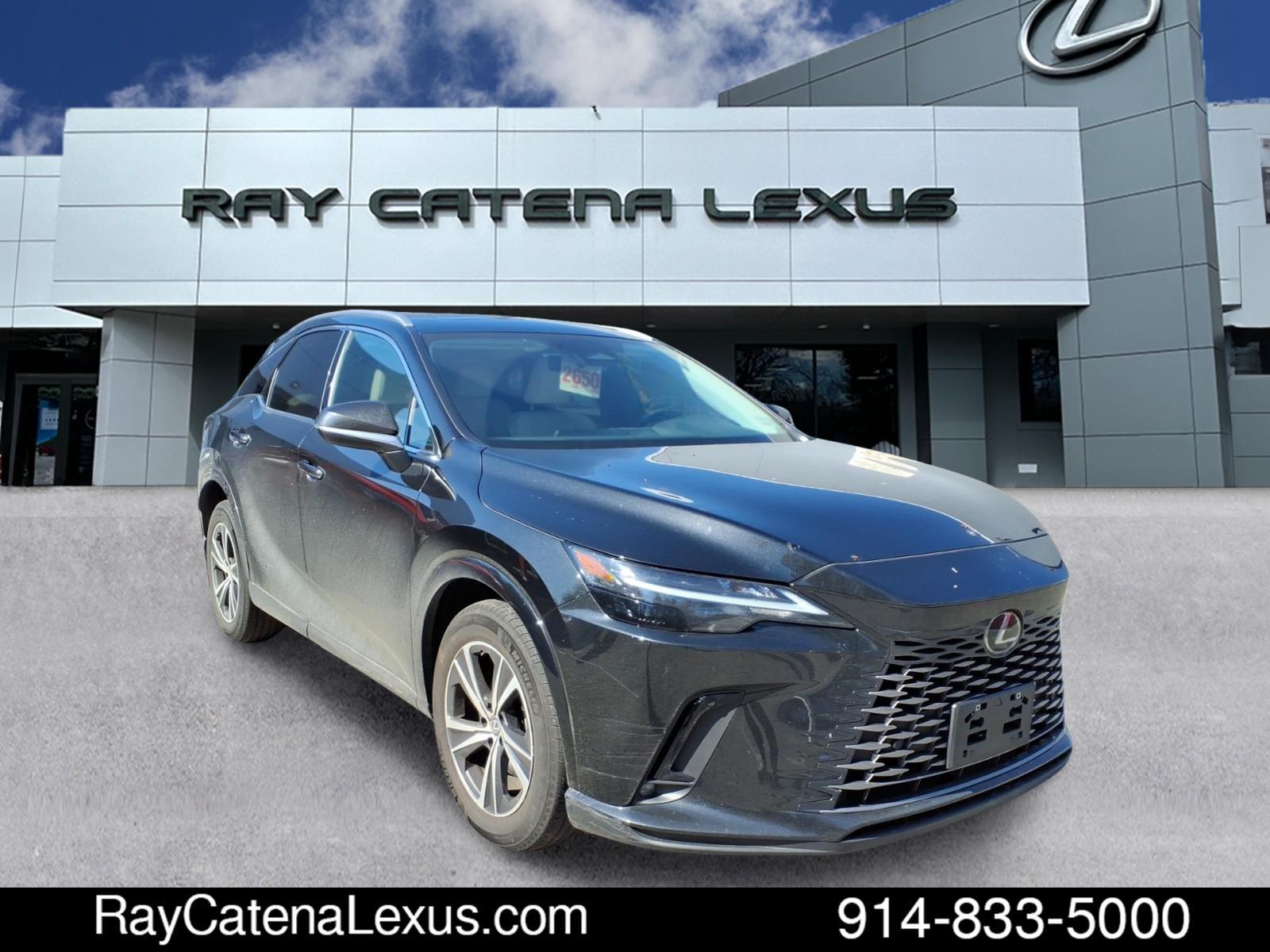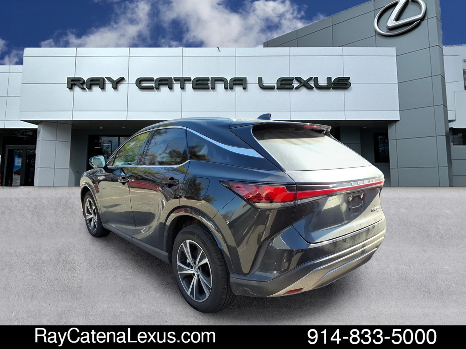 The Lexus RX 350h is a 2023 model car that has been driven 31,905 miles and is certified pre-owned. It features an all wheel drive, 2.5 liter Hybrid I4 246hp 233 lb-ft engine with sequential multiport fuel injection, and a caviar exterior with macadamia interior. This vehicle has a crash test rating of 5 out of 5 stars and comes with many features such as touch screen display, Bluetooth audio connection, blind spot sensor, hill start assist, on demand four wheel drive, navigation system with voice recognition, navigation with touch screen display, and Bluetooth phone connectivity. Additionally, this car has leather seats for added comfort and luxury. Contact Details: Ray Catena Lexus, 1435 Boston Post Road, Larchmont, NY, 10538, dbranch@raycatenalexusny.com, 8882036143.