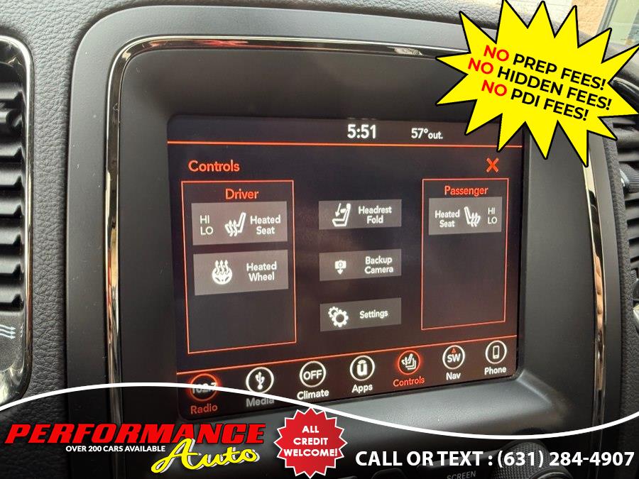 Loaded! 2018 Dodge Durango GT AWD! Preferred Package 2BC with Performance Front Grill and Fascia! Factory Sport Hood! Premium Group! Safety and Security Group! and MORE! Runs and Drives Great! Come in for a Test Drive! REMEMBER THE PERFORMANCE AUTO DIFFERENCE - NO PREP FEES! NO HIDDEN FEES! With apologies to all our customers, past and future: All of our competitors advertise cars using price structures that get their cars seen online, while no one sees ours. And so, after 25 years of business, we have to experiment with THEIR system. Therefore our advertised prices on third-party advertisers reflect a $2500 down payment or equivalent trade. It is NOT a HIDDEN FEE: we are completely up front and honest about why we have to try it. Our website clearly states the pricing on every vehicle. Third Party advertisers like Carfax, Cargurus and Autotrader etc. reward this price structure with better placement and badges. We have been asking third party advertisers for many years to give us a level playing field. We always succeed on a level playing field. Our competitors have downpayments between $2500-$9000 or even a % of price, then add hidden fees or require financing through them. Some dealers will not list a downpayment in their ads and you only find out when you go to see the vehicle. With us, financing is not required, but if you prefer to, we work with many banks to get you the best terms. We are sorry for any inconvenience, but pure pricing placed our vehicles at the bottom of search lists. We had no choice but to try advertising their way so that you can at least see our inventory, and hopefully we will do business. We have been selling quality cars with great reviews for 25 years. Our reputation is our strongest quality. We will do everything we can to satisfy you. It is no accident that 30% of our customers are repeat business.